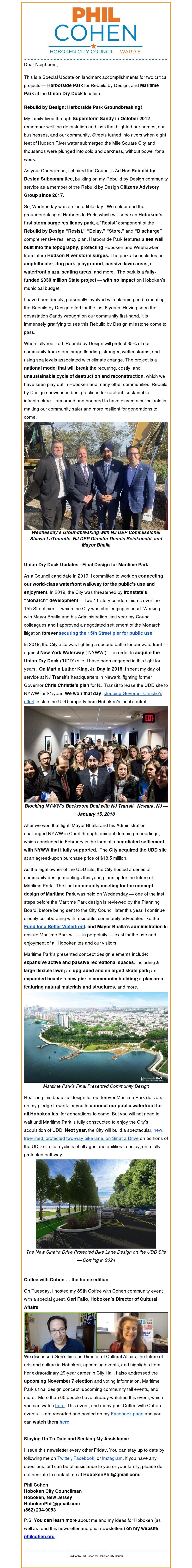 OCTOBER 27TH 2023 NEWSLETTER: SPECIAL UPDATES ON HARBORSIDE PARK FOR REBUILD BY DESIGN & MARITIME PARK AT UNION DRY DOCK October 27, 2023 Phil Cohen